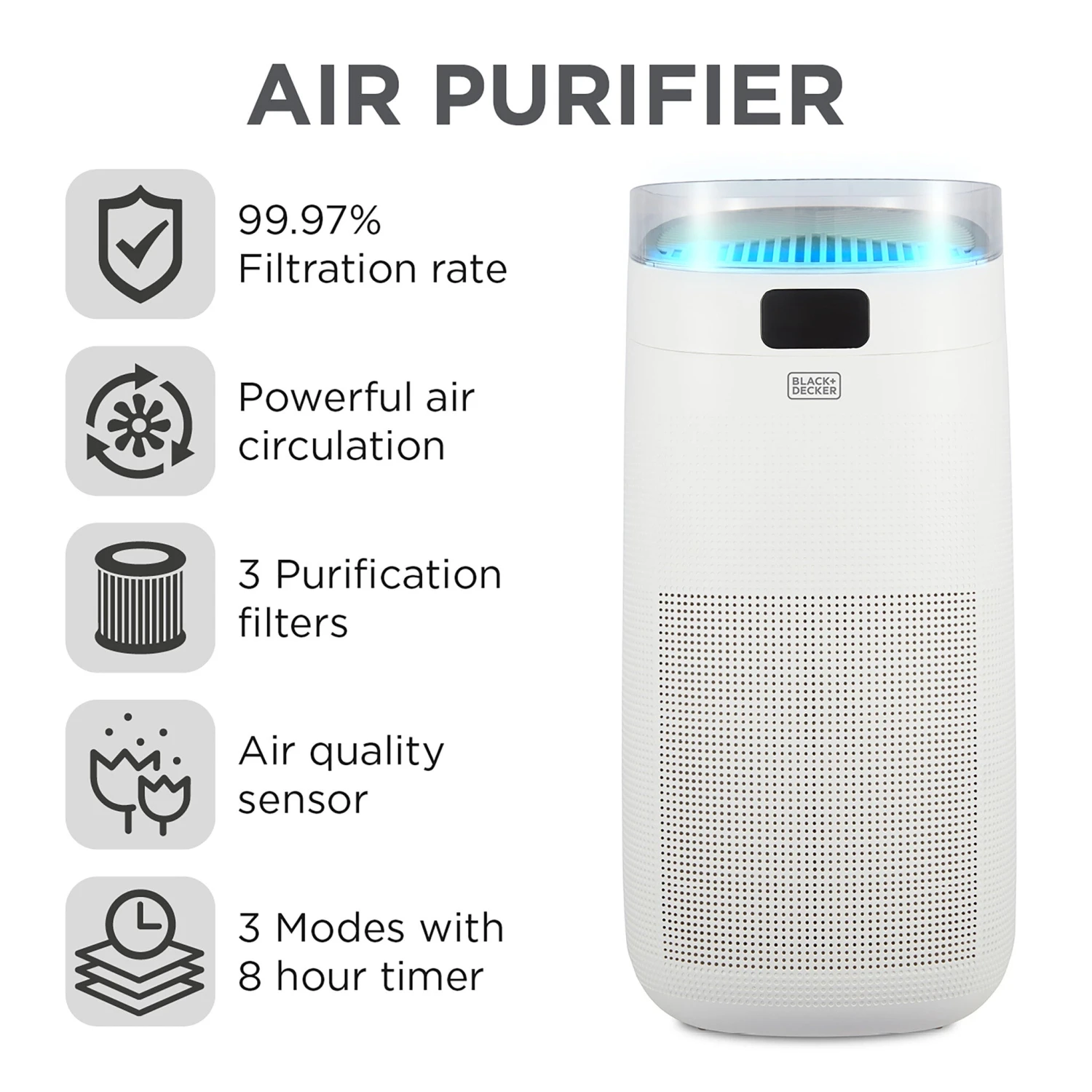 Air Purifier with Air Quality Sensor and 8 Hour Timer White