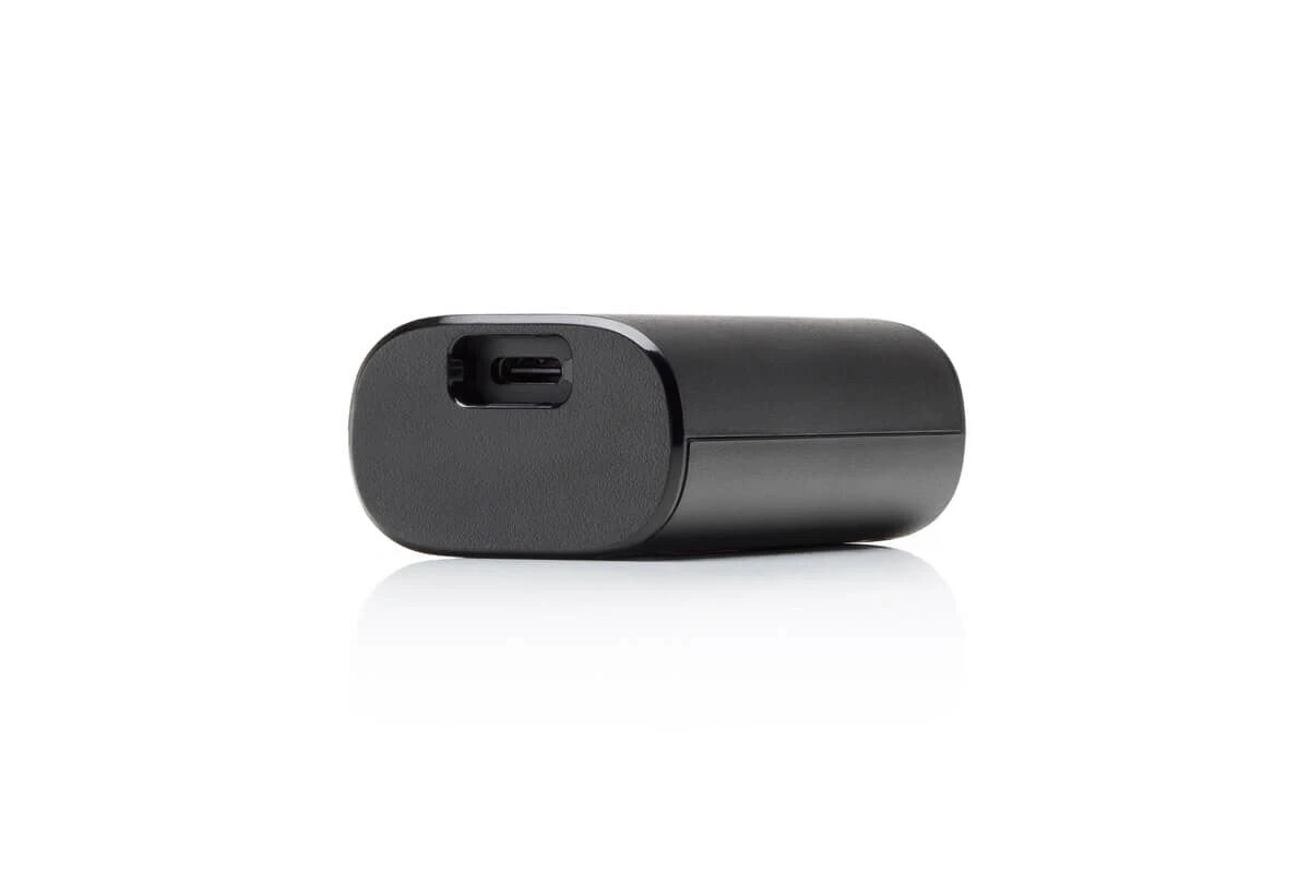 The portable DJI FPV Goggles Battery can charge the DJI FPV Goggles. It comes with a real-time battery level indicator (when being used with the DJI FPV Drone) for DJI FPV Goggles V2. When fully charged, it can provide up to 110 minutes of battery life for the DJI FPV Goggles V2.