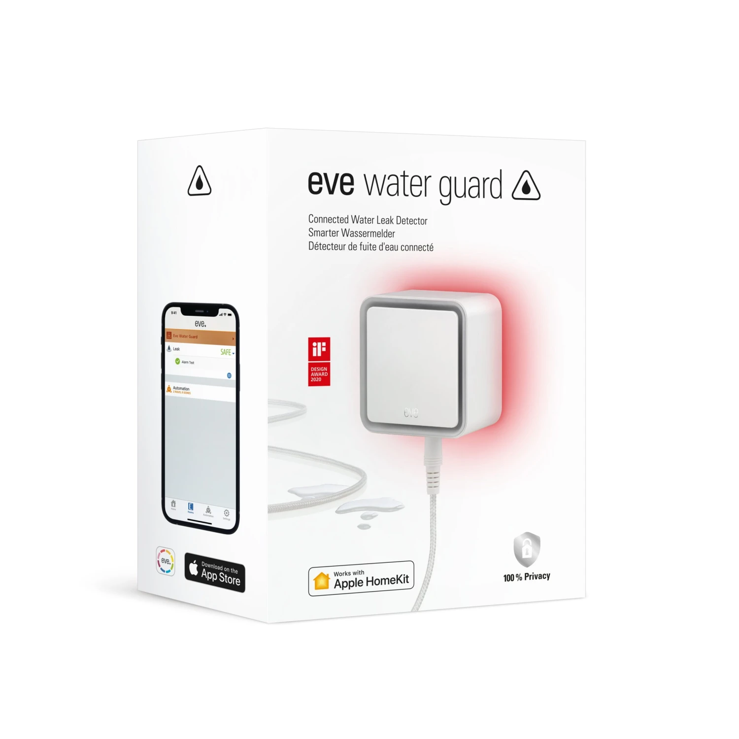 - Avoid expensive water damage: Eve Water Guard detects water leaks, and alerts you the moment they occur.