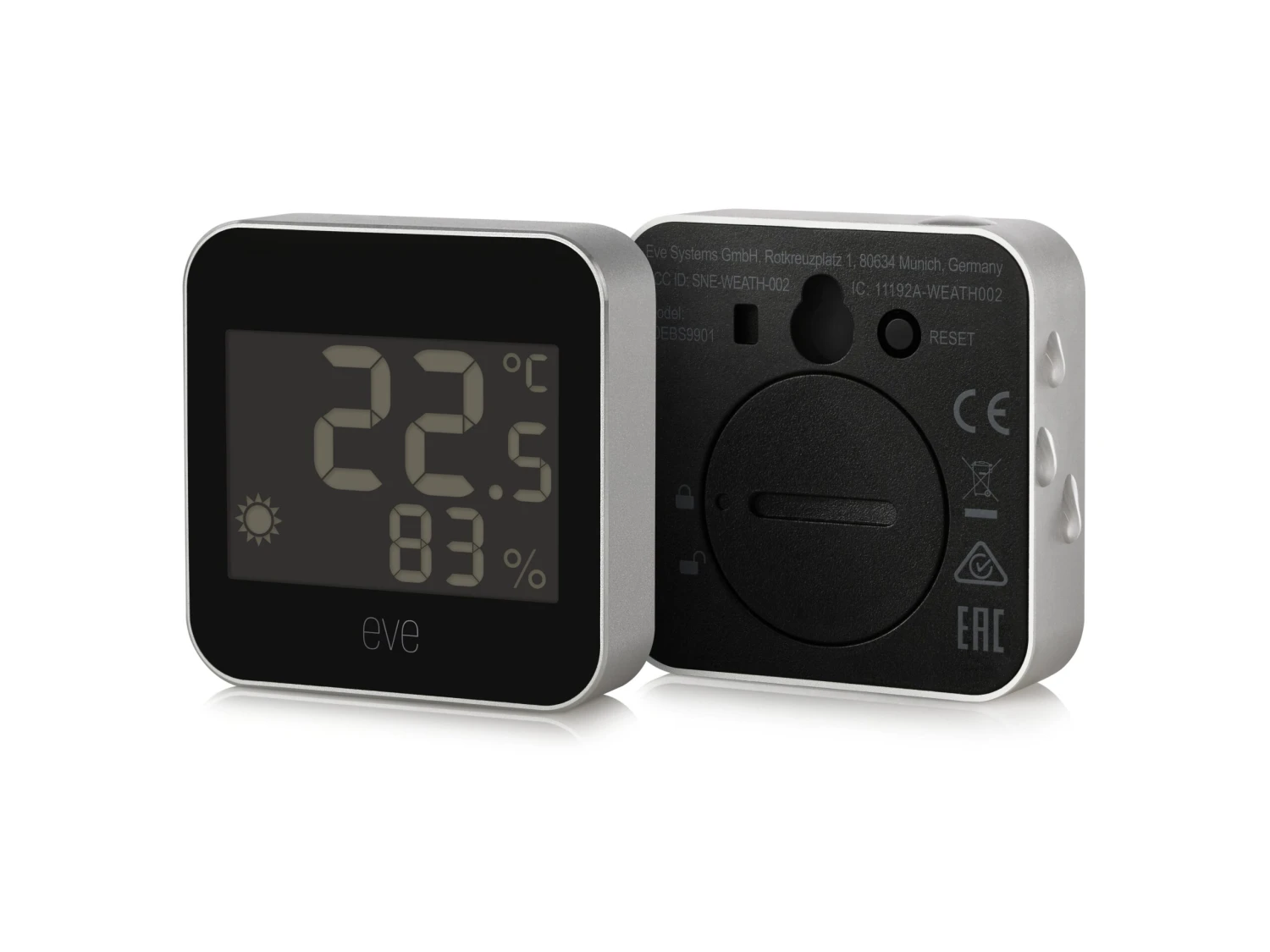 With a sleek & sophisticated design and IPX4 water resistance, Eve Weather offers truly wireless, energy-efficient operation with support for Bluetooth and Thread.