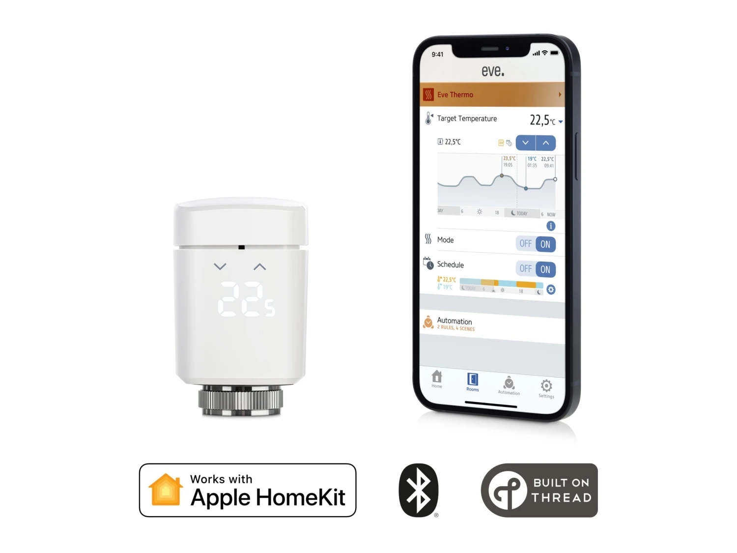 Eve Thermo joins your Thread network automatically and is Apple HomeKit-enabled for outstanding ease of use with iPhone, iPad, and Apple Watch. Eve Thermo is quick & easy to install and set up, and doesn’t need a bridge. And the best thing about all Eve accessories is how they protect your privacy: Eve does not harvest your personal data and there is no Eve cloud, so your data won’t get exposed.