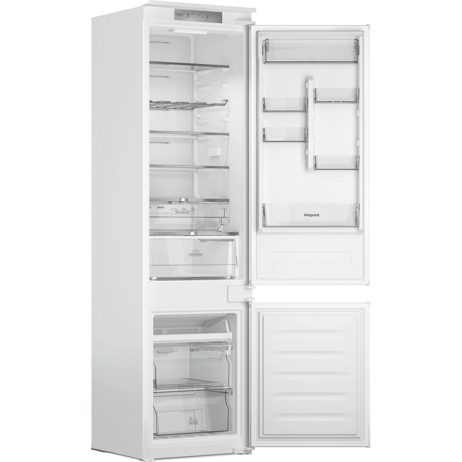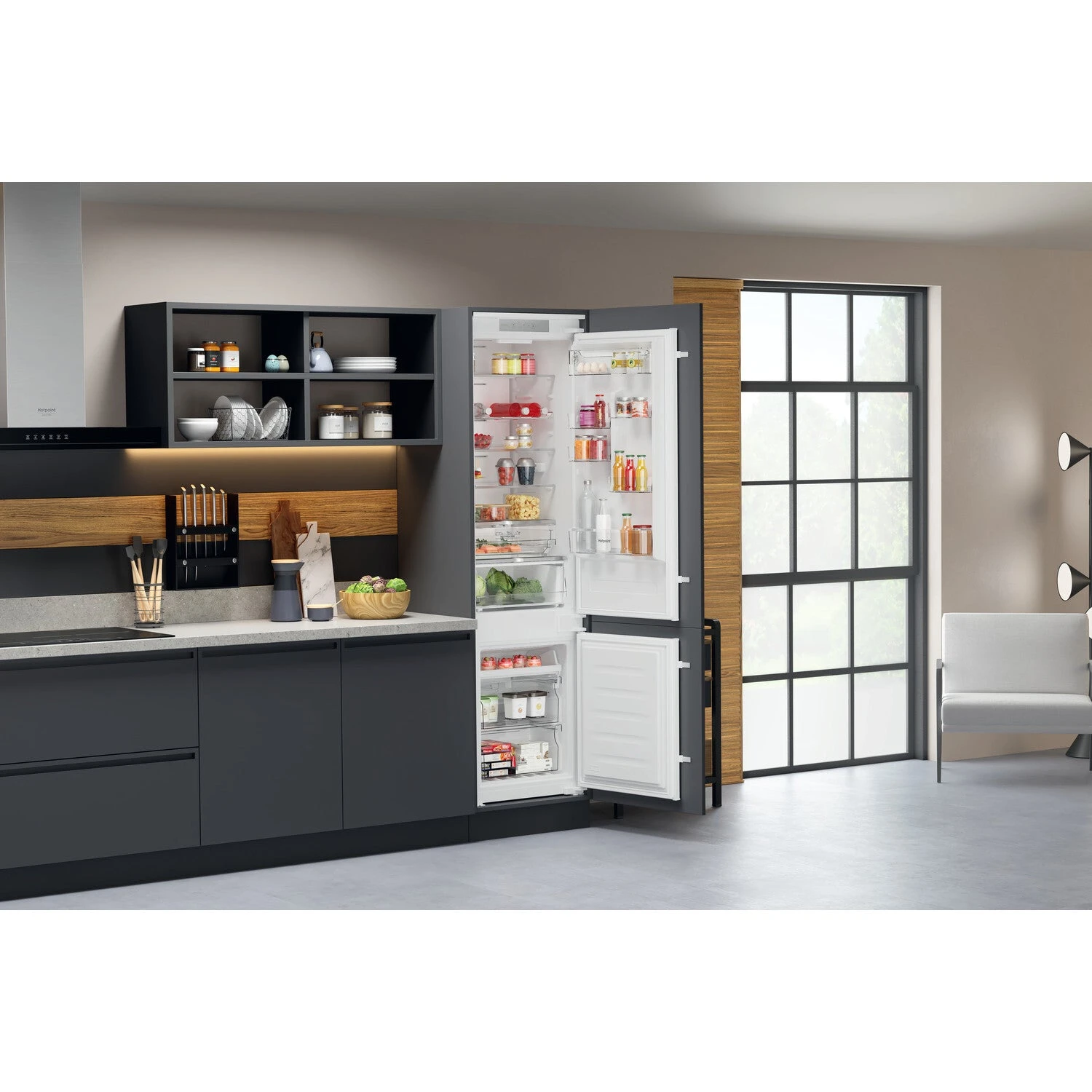 This Hotpoint built in Fridge Freezer features: a tall appliance to fit your family needs. White colour. Glass shelves, providing robustness. A fan that provides a smooth and even flow of air in your appliance’s cavity, for enhanced ventilation. Convenient bottle balcony to safely store your bottles.