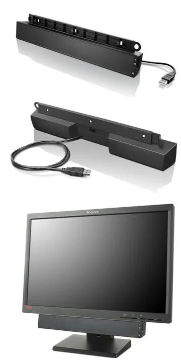 The Lenovo USB Soundbar (0A36190) allows you to add stereo sound to selected Lenovo monitors without having to sacrifice valuable desk space. The stylish Lenovo USB Soundbar is an excellent choice for adding stereo sound to Web broadcasts, multimedia presentations, and other applications that require audio.