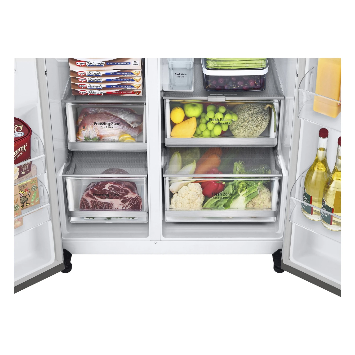With a breathtaking design the LG GSXV91BSAE will be the centerpiece of your kitchen and wow everyone that sees it. The striking new design brings sophisticated style and practical solutions building on LG’s award-winning technologies. The newly designed seamless InstaView™ Door-in-Door™, now 23% wider, will reveal your favourite snacks in an instant with two quick knocks, and allow quick easy access without opening the full door. For greater practicality the interior has been redesigned to give even greater storage and flexibility than previous LG models. Even with all that storage space, you won’t have to worry about your food spoiling as LG’s NatureFRESH™ technology helps keep food fresh for longer. And with LG’s innovative UVnano™ technology within the dispenser harmful bacteria is eliminated automatically with UV light.