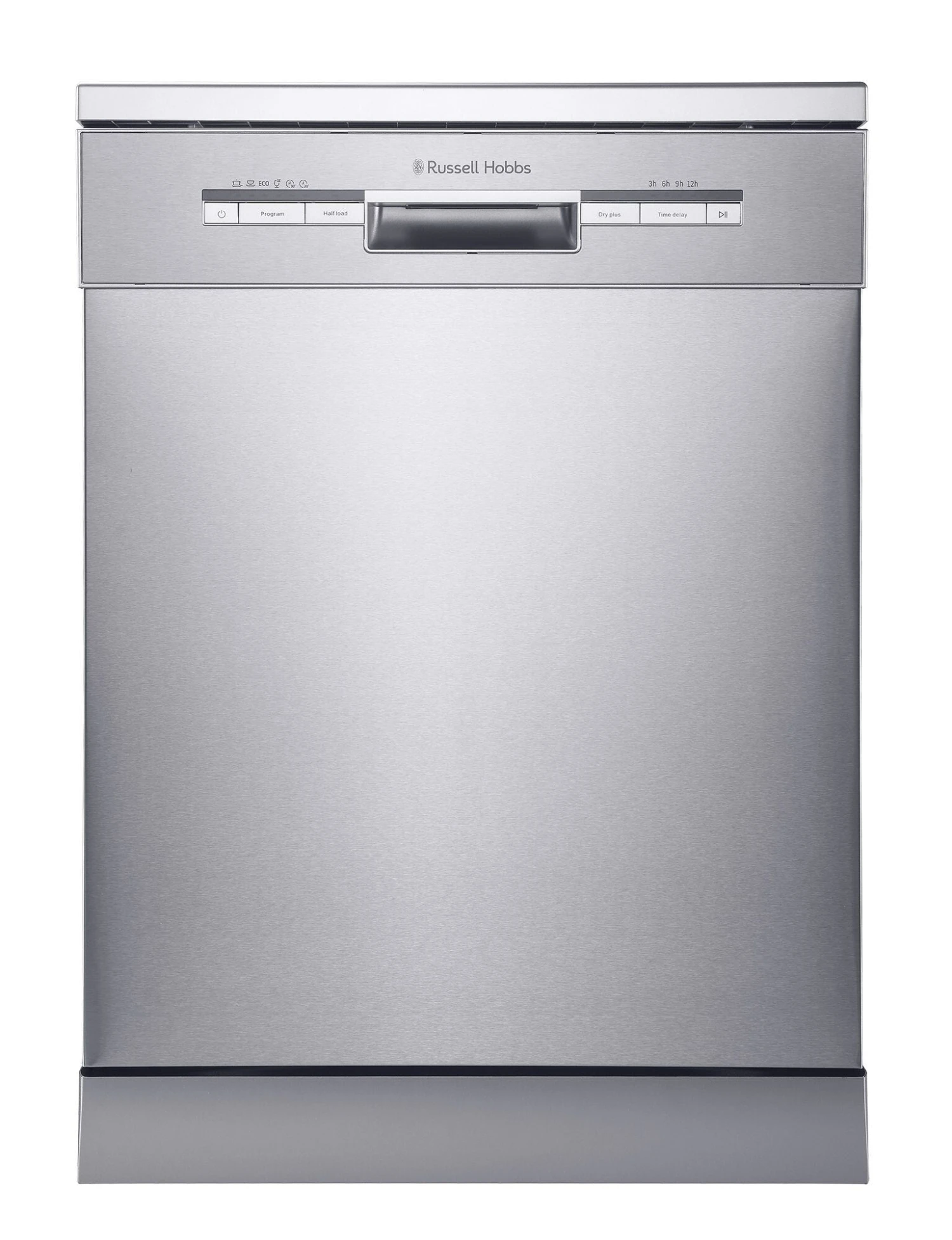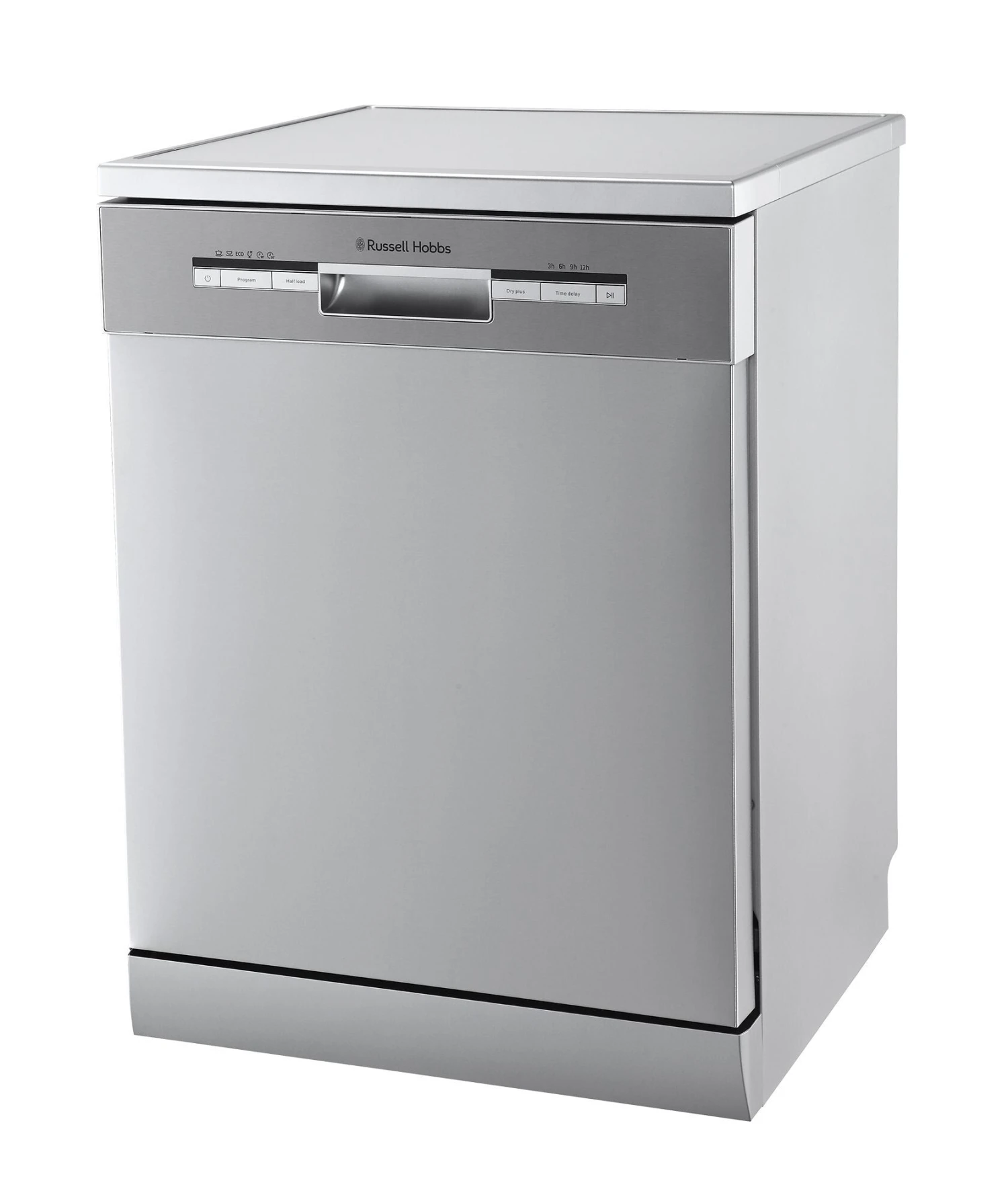 Russell Hobbs RHDW3SS-M/01. Appliance placement: Freestanding, Product size: Full size (60 cm), Door colour: Metallic. Number of place settings: 12 place settings, Noise emission class: C, Noise level: 49 dB. Energy efficiency class: D, Water consumption per cycle: 11 L, Energy consumption per 100 cycles: 82 kWh. Width: 600 mm, Depth: 600 mm, Height: 850 mm