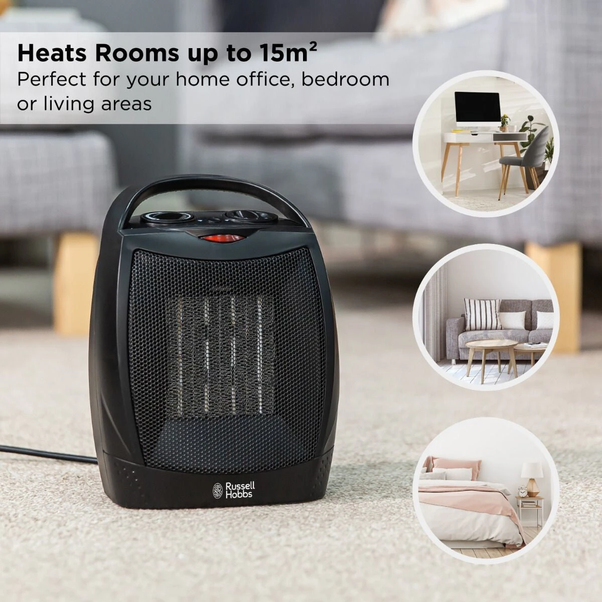 This portable freestanding heater is ideal for warming spaces up to 15m², perfect for rooms such as your home office or bedroom.