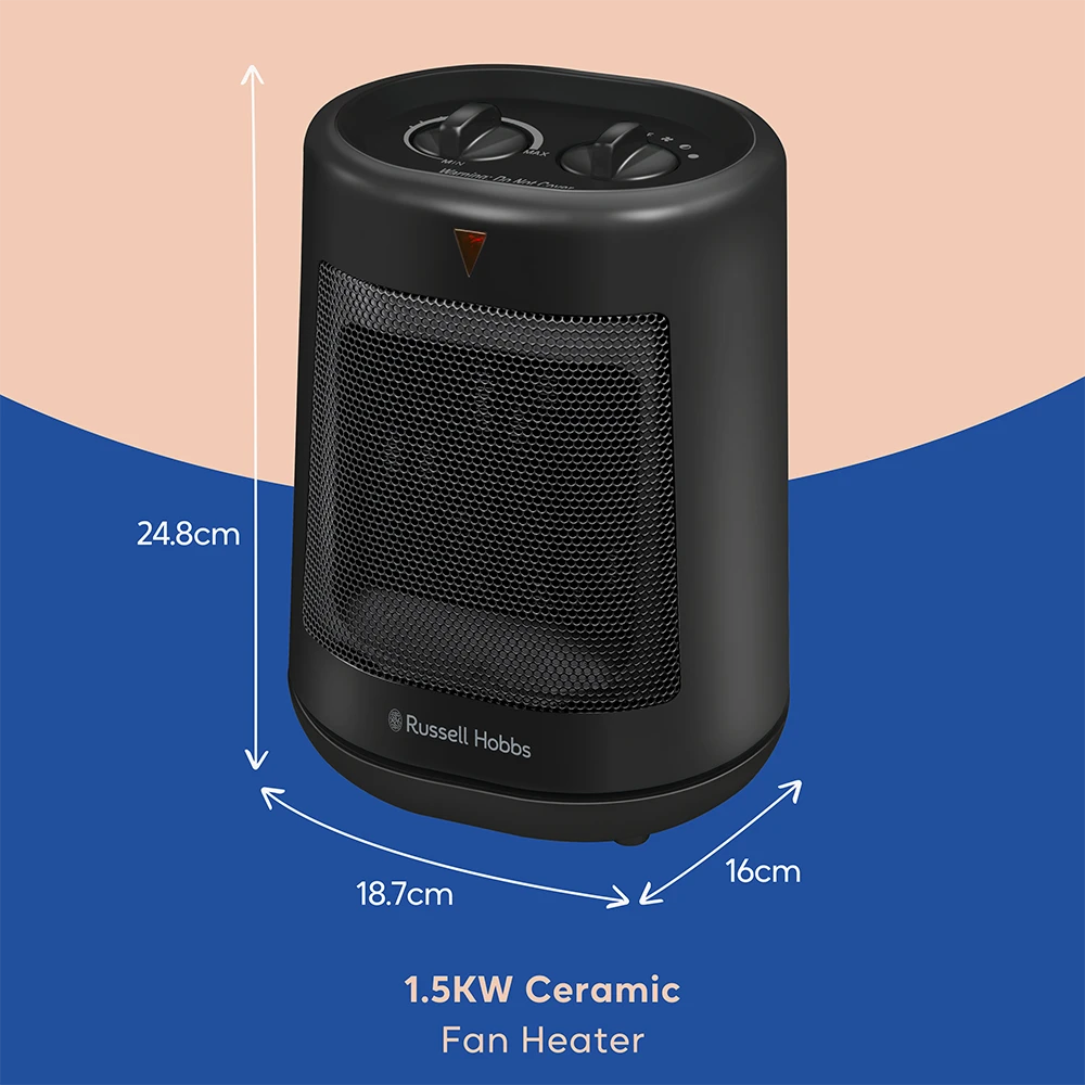 This oscillating ceramic heater from Russell Hobbs is the perfect portable product to warm your home during cold spells and winter months. It features 2 heat settings for added flexibility – 1000W for low heat and 2000W for high heat, whilst the built in adjustable thermostat helps you maintain the perfect level of heat. There’s also a handy fan-only setting, making it ideal for use all year round. Using ceramic PTC heating technology and ultra-quiet fan, this heater is ideal for use all around the home. The oscillating feature ensures even heat distribution, to create a toasty temperature throughout the room.