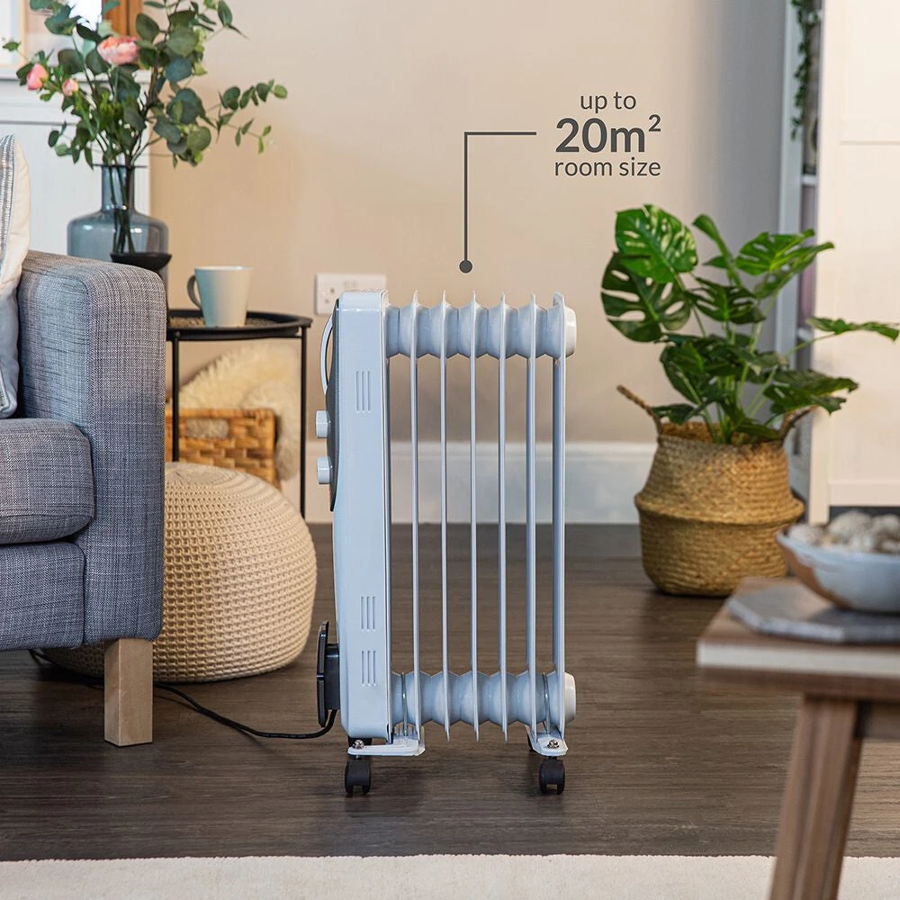 This 1.5kW oil filled radiator is ideal for warming spaces up to 15m2, perfect for rooms up to the size of a small living room or bedroom. The 7 fins are designed for even heat distribution.