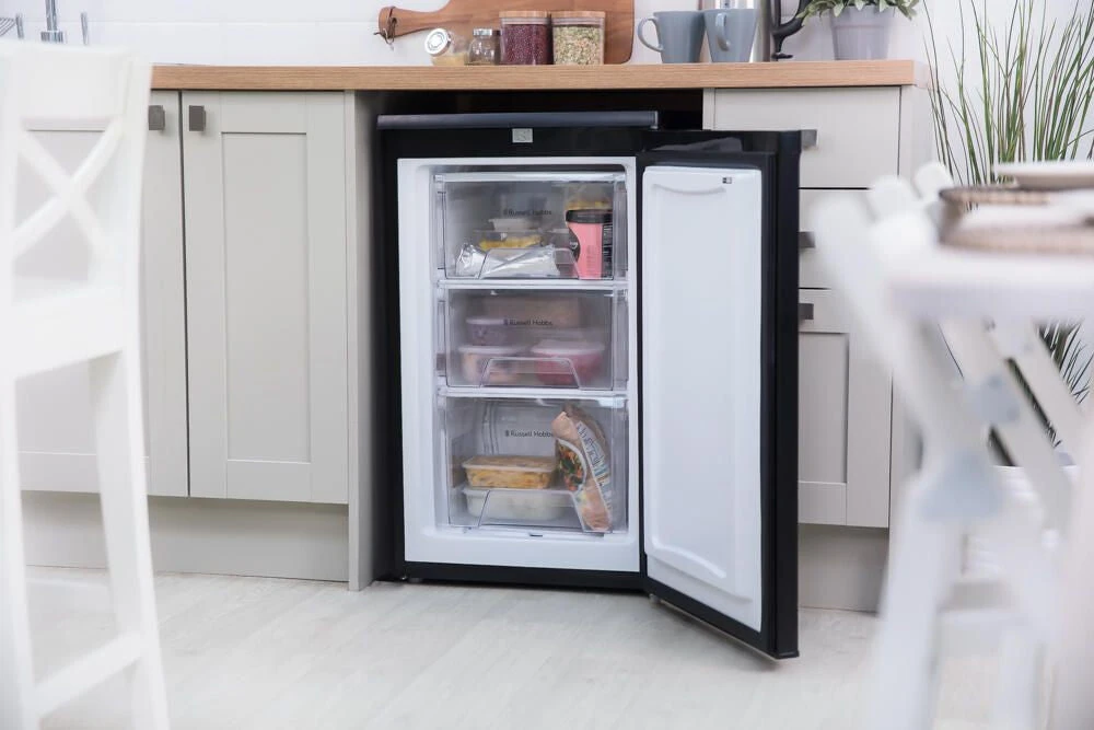 This black Russell Hobbs under-counter freezer is perfect if you’re in need of extra cold storage but are tight on space. With its compact size, and modern black design, this under counter freezer can fit neatly under your kitchen counter.