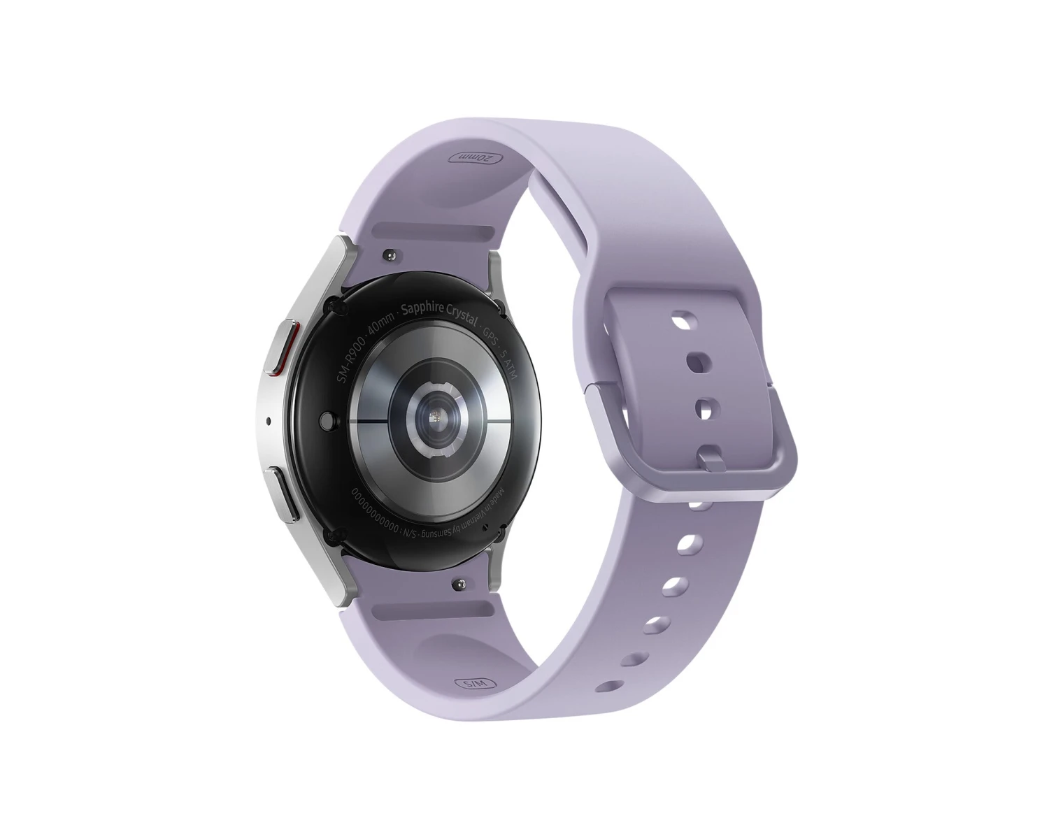 Samsung Galaxy Watch5 . Display diagonal: 3.05 cm (1.2″), Display technology: OLED, Display resolution: 396 x 396 pixels, Touchscreen. Processor frequency: 1180 MHz, RAM capacity: 1500 MB, Flash memory: 16 GB. Wi-Fi. GPS (satellite). Battery capacity: 284 mAh. Weight: 28.7 g. Waterproof up to: 50 m, Band colour: Lavender. Operating system installed: Wear OS