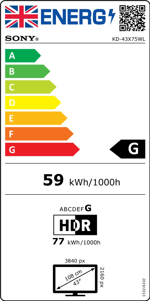 | Energy consumption (SDR) per 1000 hours | 59 kWh |