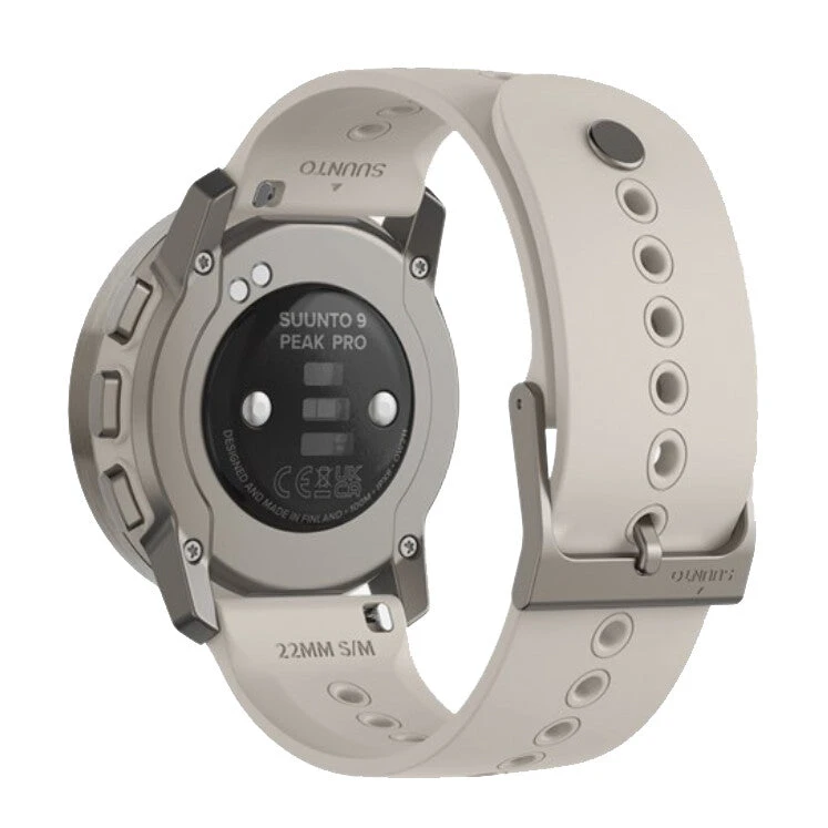 Suunto 9 Peak Pro. Display diagonal: 3.05 cm (1.2″), Display technology: Dot-matrix, Display resolution: 240 x 240 pixels, Touchscreen. GPS (satellite). Weight: 64 g. Band material: Silicone, Band colour: Sand