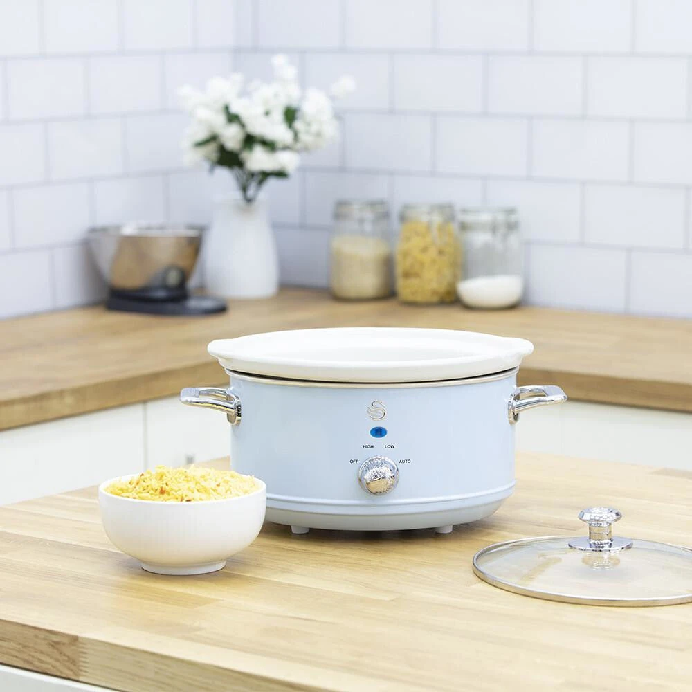 Swan SF17021BLN Retro Slow Cooker with 3 Temperature Settings, Keep Warm Function, 3.5L, 200W, Retro Blue