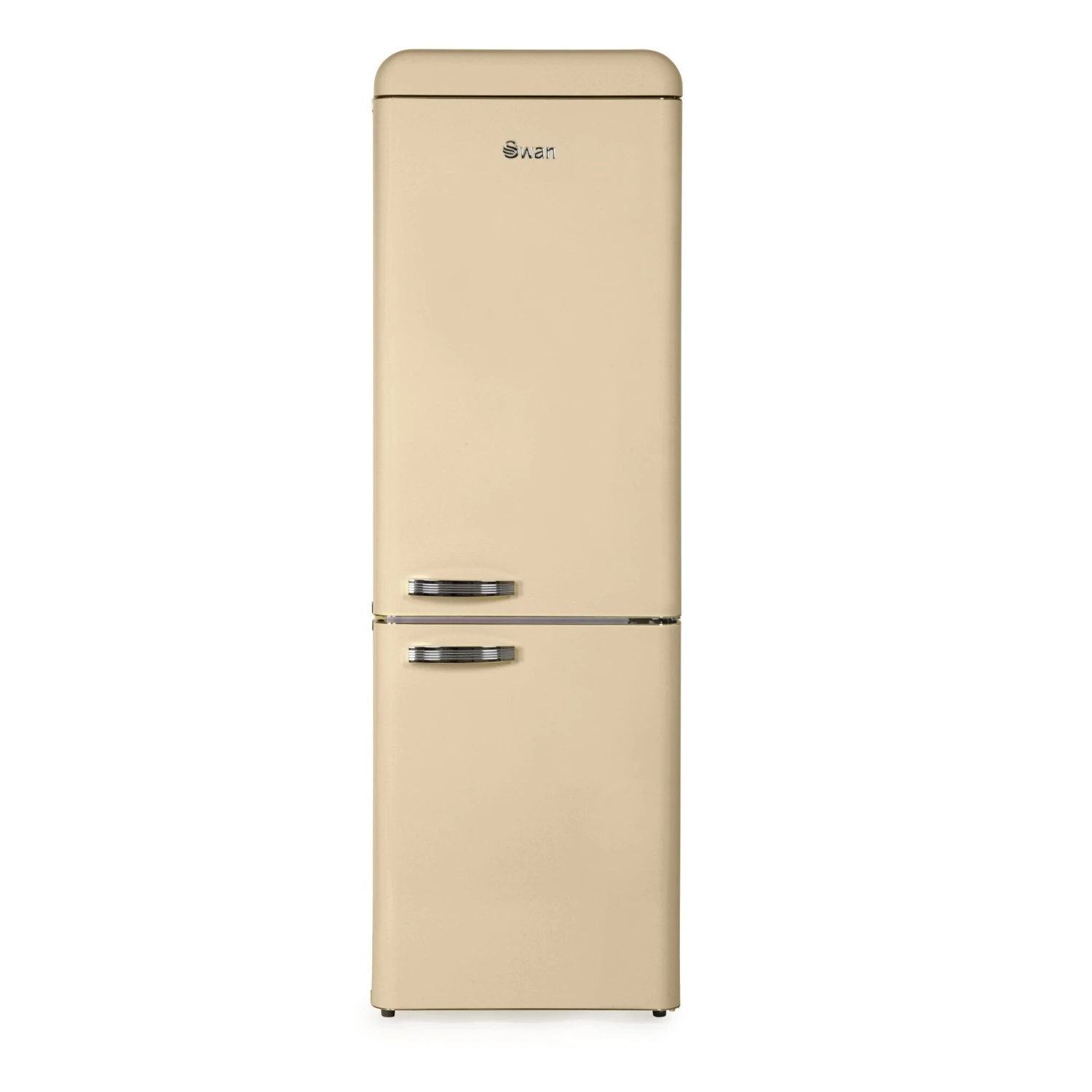 Swan SR11020CN. Total net capacity: 300 L. Door hinge: Right. Noise level: 42 dB. Fridge net capacity: 209 L, Fridge interior light, Fridge number of shelves/baskets: 4, Number of vegetable drawers: 1. Freezer net capacity: 91 L, Freezing capacity: 4.1 kg/24h. Annual energy consumption: 256 kWh. Product colour: Cream