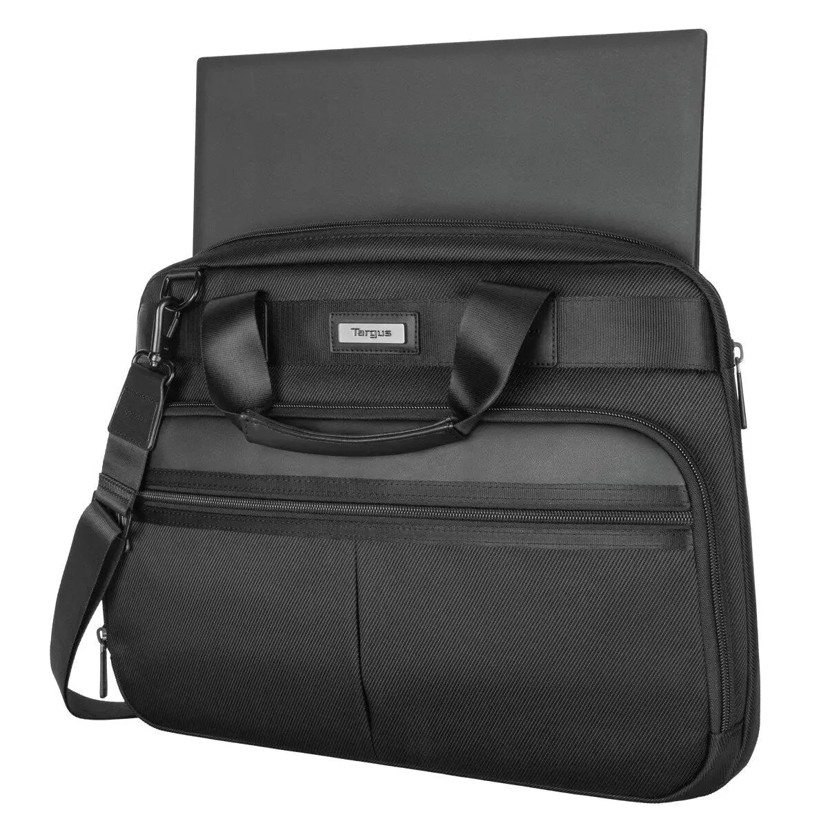 Prepare for a productive workday while protecting your tech with the Targus® 13-14” Mobile Elite Slimcase. This case features a single, padded main compartment that shields your laptop from everyday bumps and scratches while keeping documents or magazines handy, and two front pockets for accessory storage.