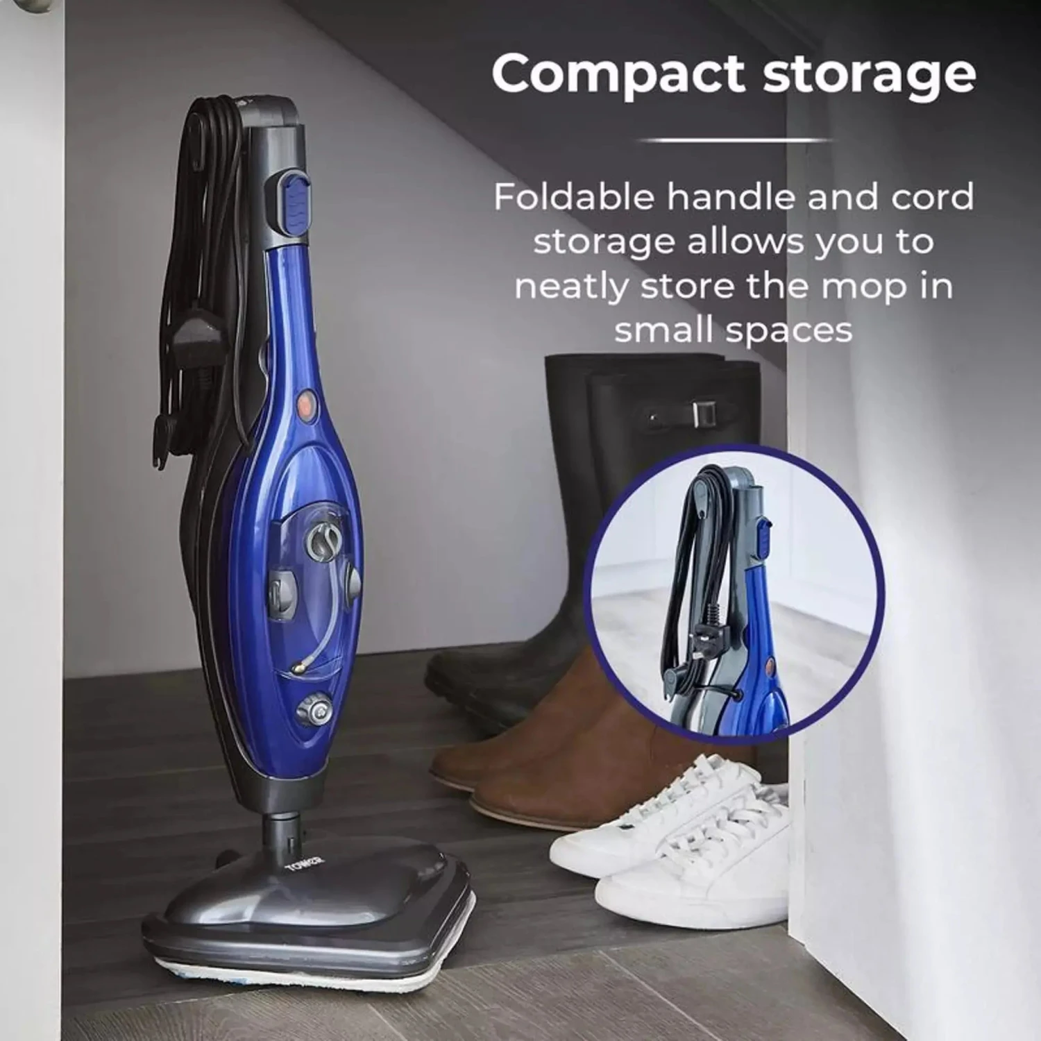 Ultra-lightweight and easy-to-move, this steam mop glides across surfaces and can be carried without any heavy lifting. It has the ability to convert into a versatile handheld steam cleaner, perfect for tackling tiles, carpets, hard floors, hobs, ovens, windows and upholstery. With a foldable handle and cord storage, this mop can be neatly stored in small spaces without messy wires getting in the way. It comes equipped with 10 accessories and tools including a carpet glider to freshen up and deodorise carpets and a scraper tool to effortlessly remove tough stains.
