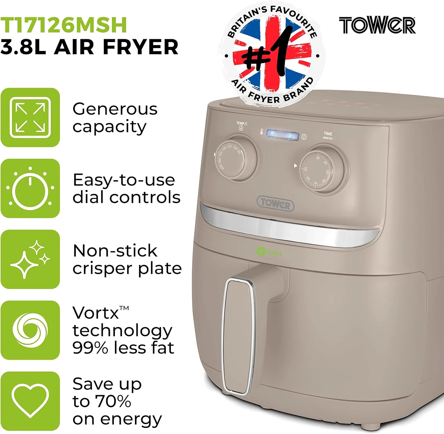 Tower Vortx 3.8L Air Fryer – Latte