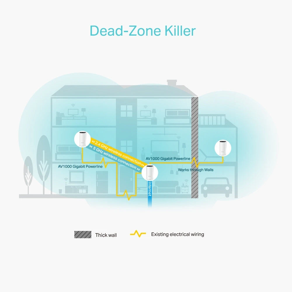 Deco P9 combines dual-band Wi-Fi and powerline to establish a stronger mesh network.