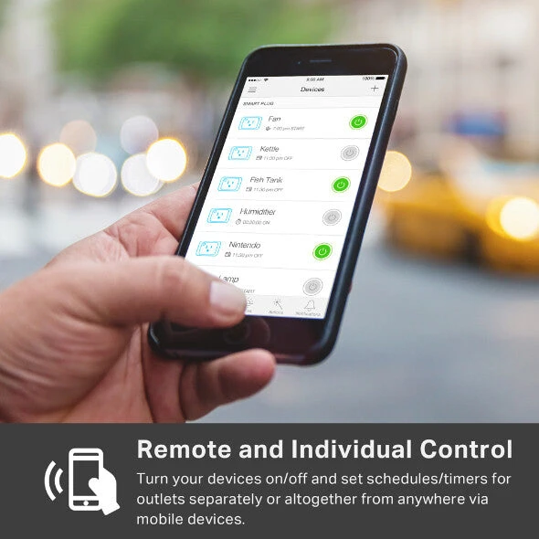 Create schedules/timers to turn outlets on/off at specific times to improve convenience and efficiency, manage complicated set-ups like high-end fish tanks, and cut down on power consumption.
