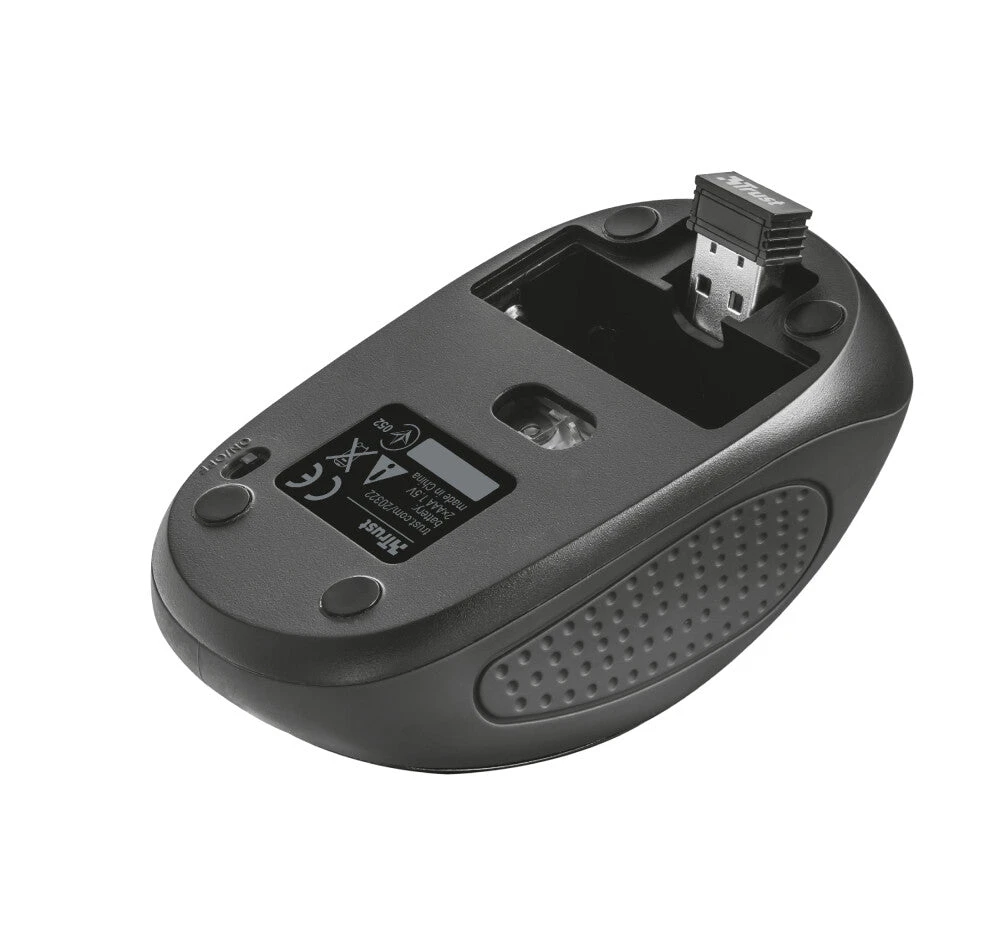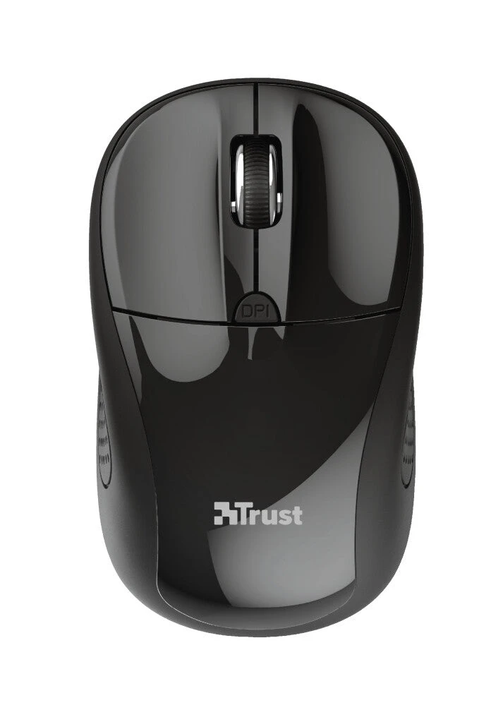 Trust 20322. Form factor: Ambidextrous. Movement detection technology: Optical, Device interface: RF Wireless, Movement resolution: 1600 DPI, Buttons type: Pressed buttons, Buttons quantity: 4, Scroll type: Wheel. Power source: Batteries. Product colour: Black