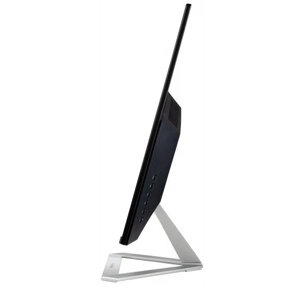 The monitor takes on an architecturally inspired design aesthetic, fused with modern form factors such as a thin profile, modern frameless bezel, and a unique triangular stand.