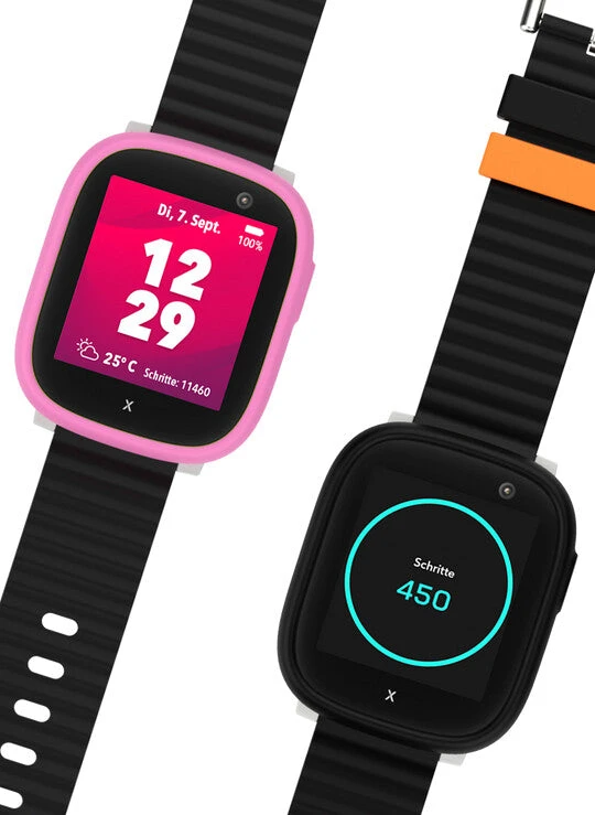 Xplora X6PLAY. Display diagonal: 3.86 cm (1.52″), Display technology: TFT, Display resolution: 360 x 400 pixels, Touchscreen. Processor frequency: 1.2 MHz, Flash memory: 9 GB. Wi-Fi. GPS (satellite). Battery capacity: 880 mAh. Weight: 56 g. Band colour: Black